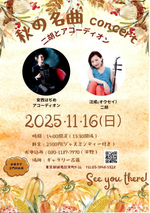 秋の名曲コンサート一二胡とアコーディオンの奏一  11月16日